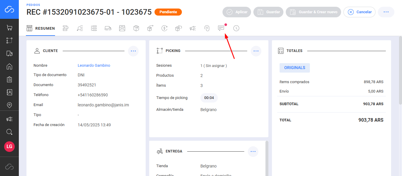 Los Mensajes dentro de un pedido permiten dejar comentarios u observaciones relevantes que facilitan la comunicación entre distintos equipos operativos y sistemas. Estos mensajes pueden incluir aclaraciones logísticas, referencias externas, instrucciones especiales, notas internas, o cualquier otro dato que complemente el seguimiento del pedido. Su objetivo principal es centralizar la información contextual directamente en la orden, evitando que se pierda entre canales informales.