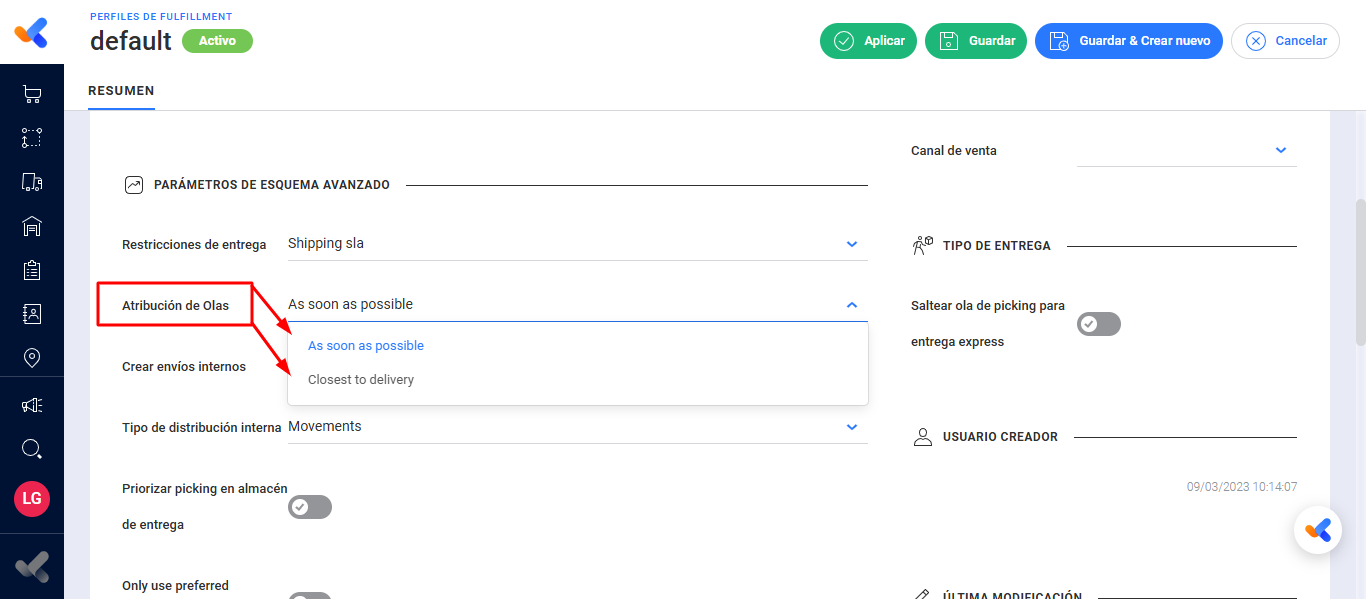 En ambos casos, el sistema garantiza que la Ola seleccionada finalice siempre de forma previa al tiempo de despacho estipulado para cumplir con el SLA.